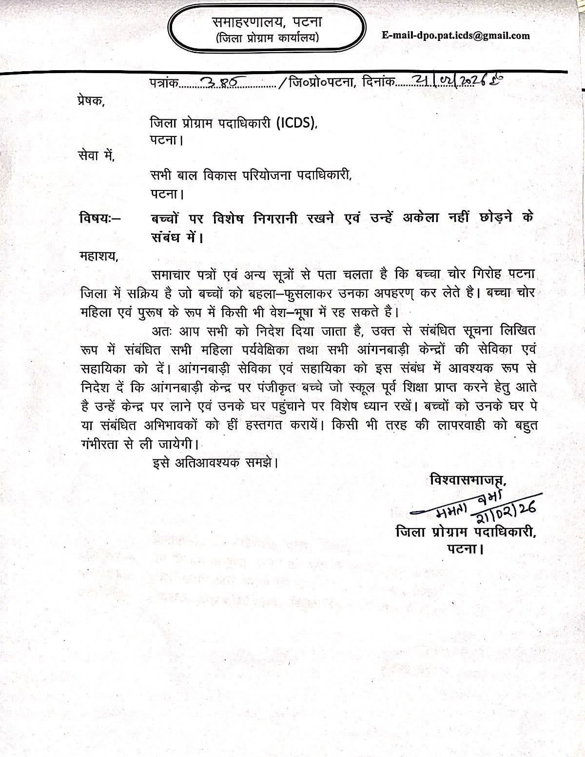 Patna Child Safety Alert 2026: ICDS का आदेश, आंगनबाड़ी केंद्रों में बच्चों पर विशेष निगरानी