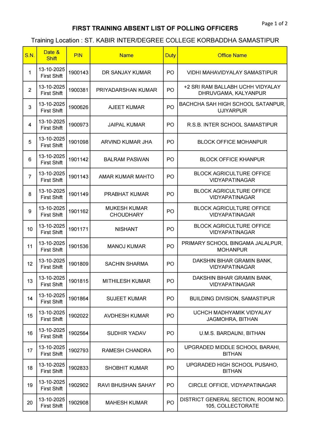 मतदान दल प्रशिक्षण में अनुपस्थिति पर जिला पदाधिकारी ने जाहिर की नाराजगी , दिया प्राथमिकी दर्ज करने का आदेश * प्रथम रेंडमाइजेशन के बाद मतदान