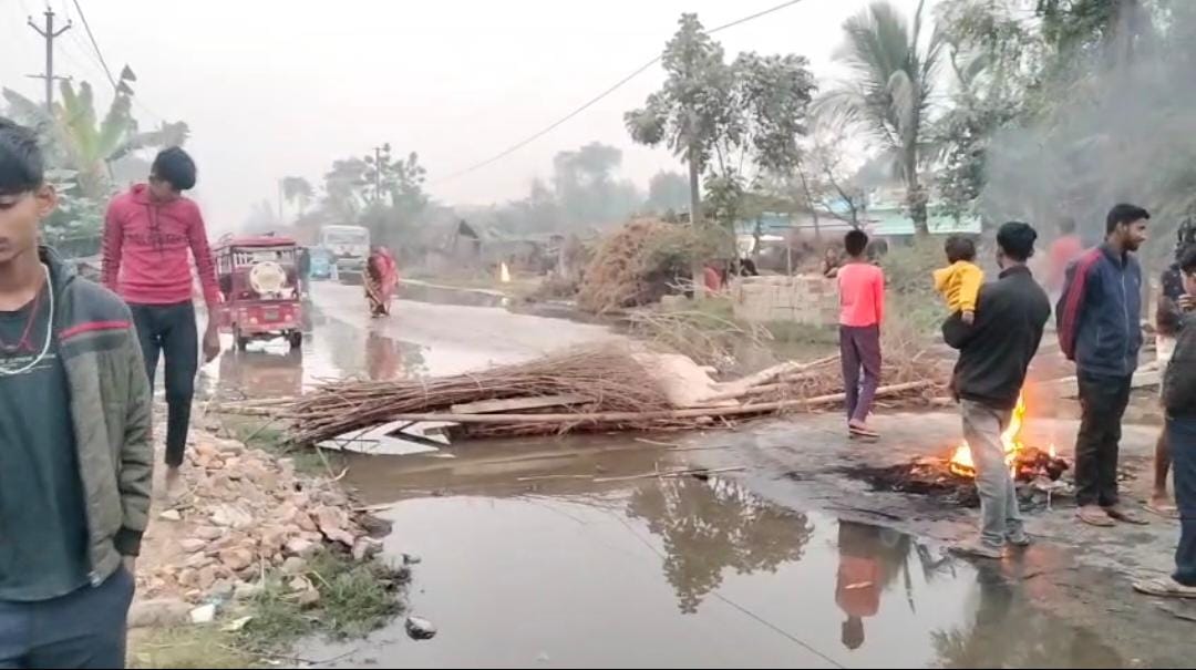 पड़ोरिया में लोगों ने एसएच-88 मार्ग किया जाम, नाली जाम होने से भड़का आक्रोश