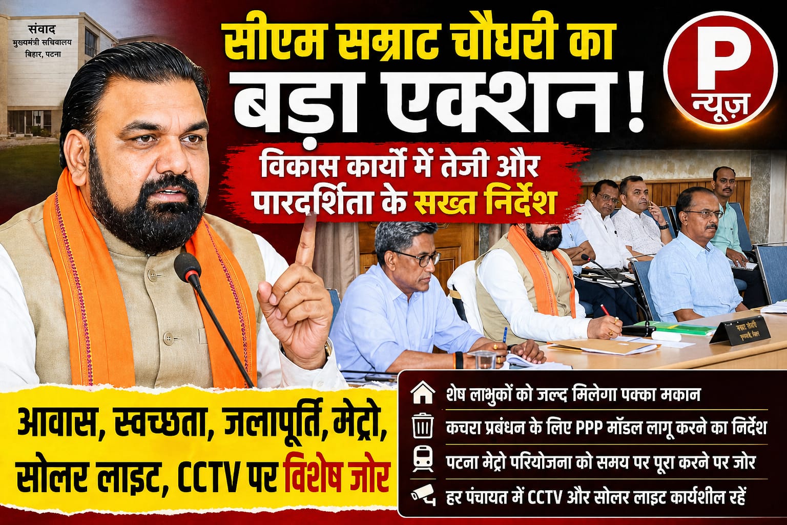 मुख्यमंत्री सम्राट चौधरी का बड़ा एक्शन: विकास कार्यों में तेजी और पारदर्शिता के सख्त निर्देश”