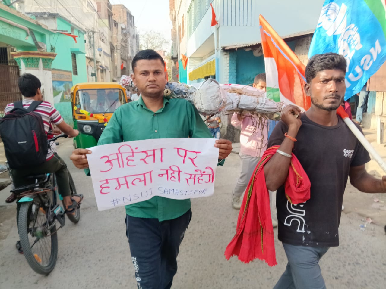 दोषियों की गिरफ्तारी न होने और पुलिस की सुस्ती से नाराज प्रदर्शनकारियों ने सरकार और पुलिस प्रशासन के खिलाफ अनोखा प्रदर्शन किया। प्रदर्शनकारियों ने प्रधानमंत्री नरेंद्र मोदी और समस्तीपुर पुलिस अधीक्षक (SP) का प्रतीकात्मक अर्थी जुलूस निकाला। इस दौरान “प्रशासन मुर्दाबाद” और “बापू का अपमान नहीं सहेगा हिंदुस्तान” जैसे नारे लगाए गए।और अर्थी को अग्नि देव के हवाले कर काफी विरोध प्रदर्शन कर महात्मा गांधी के प्रतिमा स्थापित करने और प्रतिमा को तोड़ने वाले को चिन्हित कर गिरफ्तार करने की मांग किया गया है बताते चले कि संजीव कुमार सिंह की उपस्थिति में इस प्रदर्शन कार्यक्रम में काफी संख्या में युवा लोग भी शामिल थे