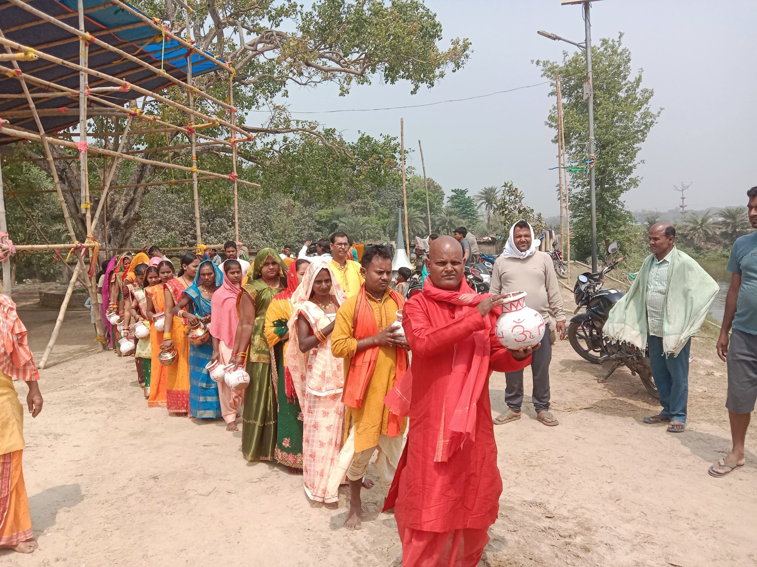 इसमें मुख्य कलश बाराती के रूप में दिनेश मंडल एवं उनकी धर्मपत्नी की विशेष भूमिका रही। वहीं पूरे अनुष्ठान को विधिवत संपन्न कराने में पंडित कृष्णानंद मिश्रा ने वैदिक मंत्रों के साथ पूजा अर्चना कराई।