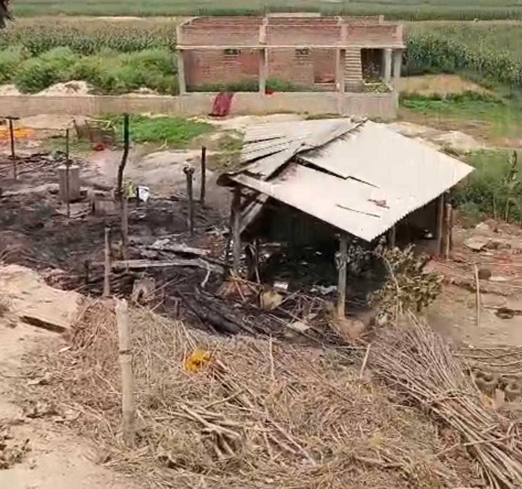 राजघाट गांव में देर रात लगी आग, 4 परिवार प्रभावित; असामाजिक तत्वों पर आग लगाने का आरोप