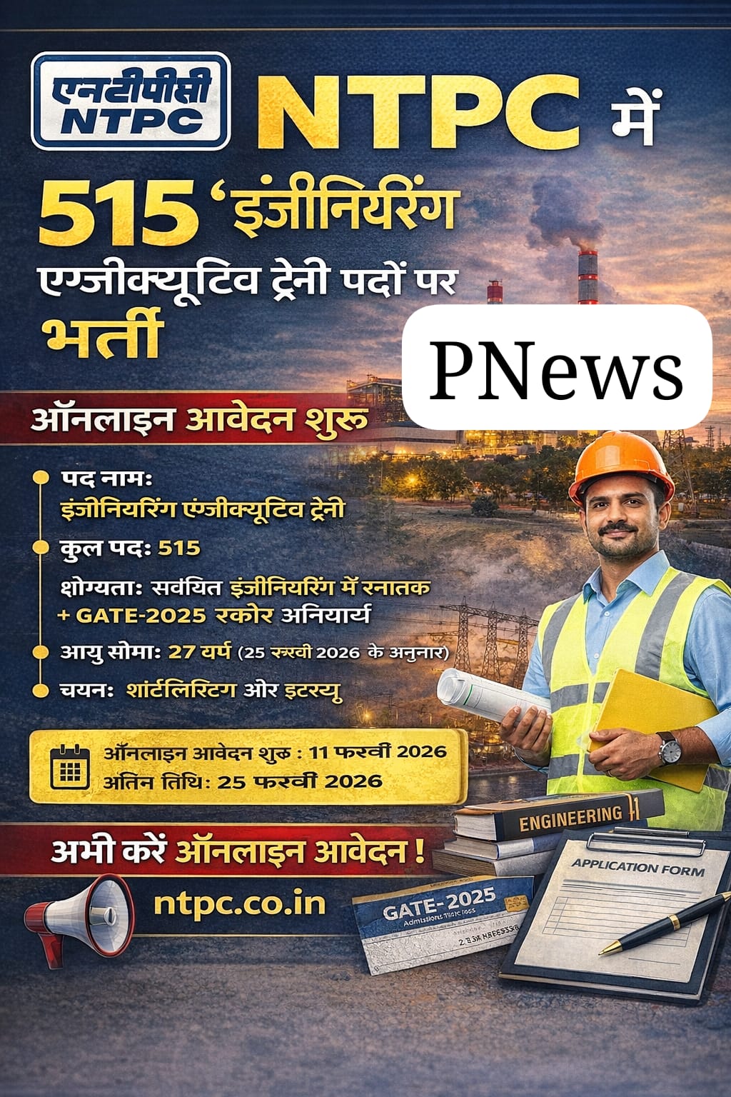 NTPC में 515 इंजीनियरिंग एग्जीक्यूटिव ट्रेनी पदों पर भर्ती, जानें आवेदन की पूरी प्रक्रिया
