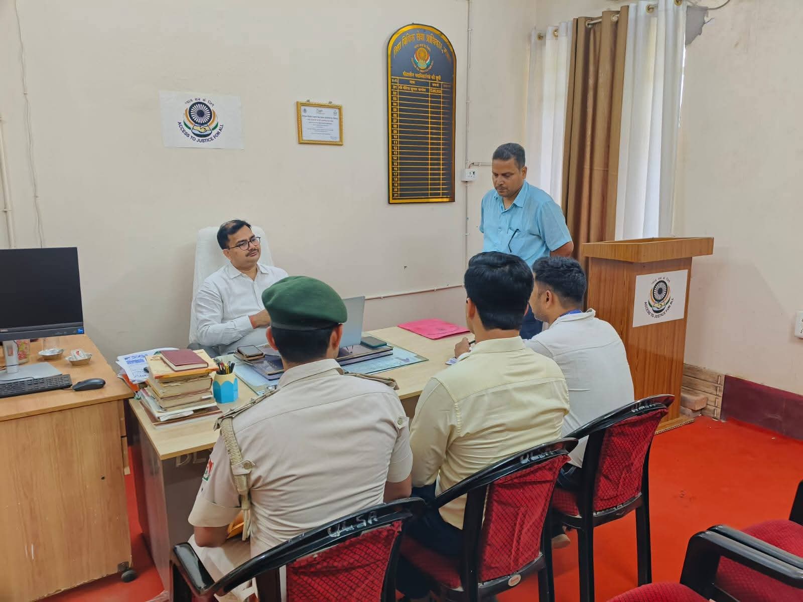 इसी क्रम में दिनांक 24.04.2026 को सचिव, जिला विधिक सेवा प्राधिकार, नवादा के प्रकोष्ठ में एक महत्वपूर्ण बैठक आयोजित की गई। बैठक में वन प्रमंडल पदाधिकारी, नवादा के प्रतिनिधि, श्रम अधीक्षक के प्रतिनिधि, कार्यपालक अभियंता विद्युत विभाग, जिला खनन पदाधिकारी तथा दूरभाष विभाग, नवादा के पदाधिकारी उपस्थित रहे।