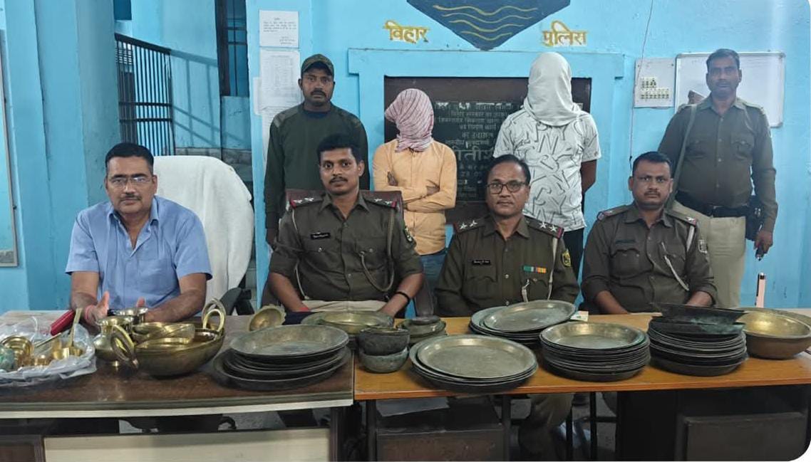 Bihar Police ने बड़ी कार्रवाई करते हुए चोर गिरोह का भंडाफोड़ किया है। पुलिस ने चोरी के सामान के साथ दो अभियुक्तों को गिरफ्तार किया है।
